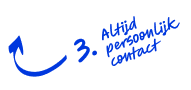 Altijd betrokkenPersoonlijk contact met Jelle, Barry of Hugo